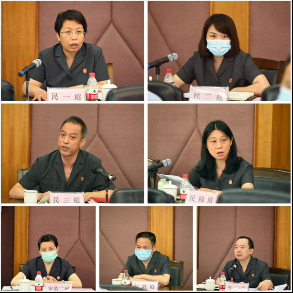 座谈会上,9位人大代表、政协委员、专家学者、律师、企业家、商会负责人、社区工作者和省法院民一庭、民二庭、民三庭、民四庭、行政庭、审监二庭、审监三庭负责人先后发言,从全面理解民法典立法原则、开展民法典学习宣传、助力湖北疫后重建和法治化营商环境建设、指导社区治理以及提升民商事审判质效等方面提出了意见和建议。
